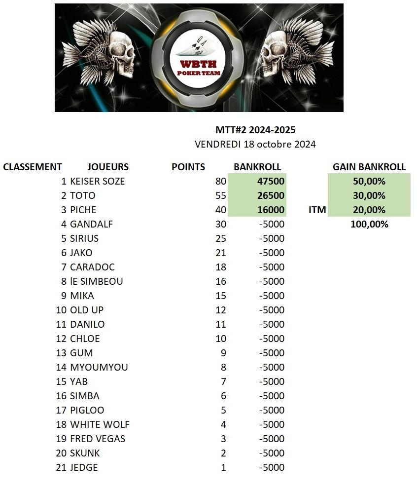 CLASSEMENT MTT SAISON XVIII